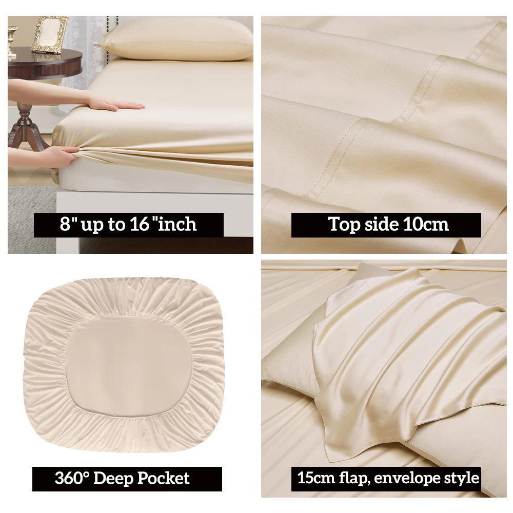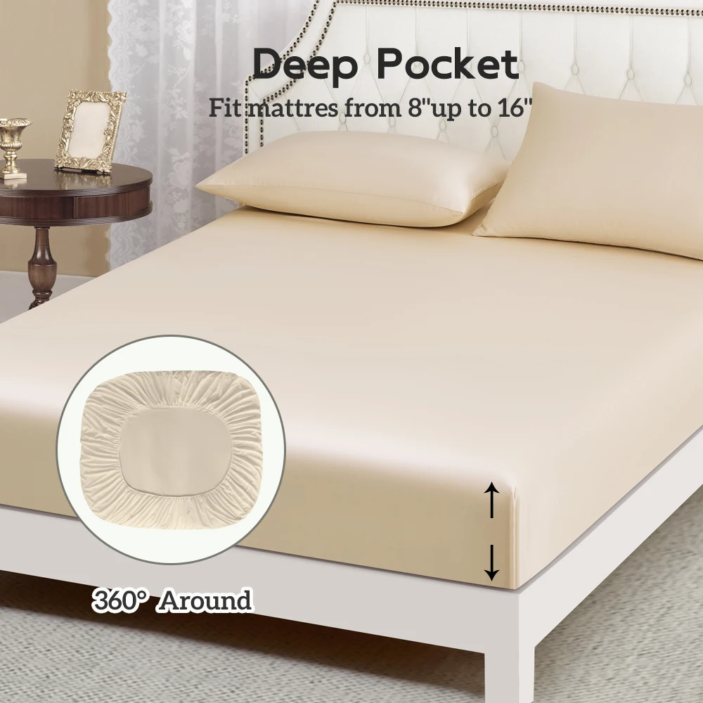 Extra Deep Pocket 60s Lyocell Bamboo Sheets 100% Organic Bedding for Summer for Extra Deep Mattresses